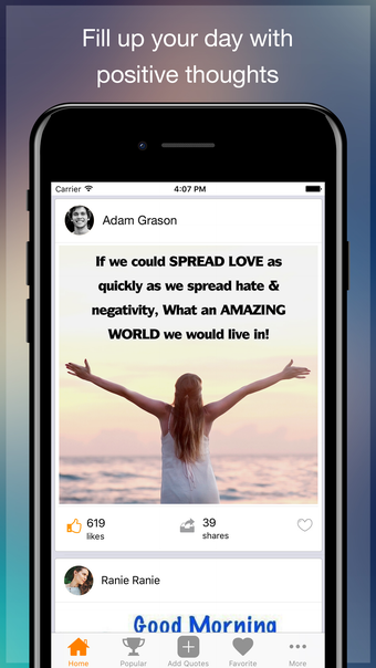 يتيح التطبيق أيضًا للمستخدمين إضافة العبارات إلى قائمة المفضلة، مما يجعل من السهل إعادة النظر فيها والتأمل في تلك التي تتر reson معهم بشكل أكبر. يتم تبسيط مشاركة العبارات مع الأصدقاء والعائلة من خلال الخيار لمشاركة الصور عبر منصات التواصل الاجتماعي الشهيرة مثل فيسبوك وتويتر وجوجل بلس.